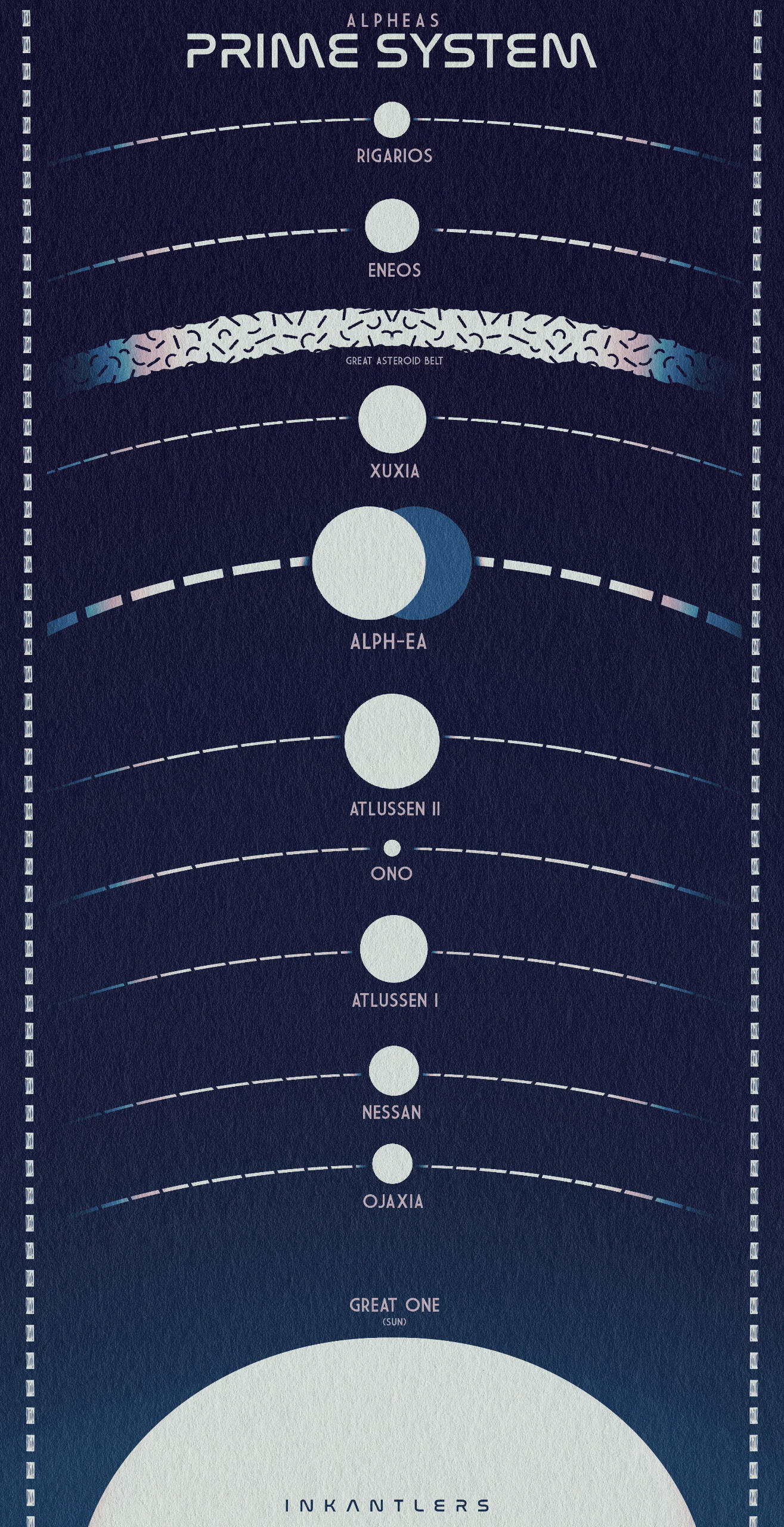 Alpheans primarily inhabit Alpha, the tangible planet within the Alph'Ea system. In contrast, Ea remains an enigmatic anomaly, invisible to the naked eye and inaccessible through conventional means. Its socio-political instability has earned it the moniker "Purgatory" among its inhabitants, deterring outsiders from seeking passage to its mysterious depths.Despite the challenges posed by Ea's precarious environment, some Eans—residents of Ea—choose to migrate to Alpha out of necessity. Adaptation to a new culture and climate can be arduous and time-consuming, making first-wave immigration a rarity. Eans, viewed by other societies as supernatural beings due to their origins in an unseen realm, coexist alongside Alpheans on Alpha, collectively known as Alpheans. It's important to note that Eans are regarded as off-limits within Alphean society due to their complexities and limitations.Interdimensional traveling