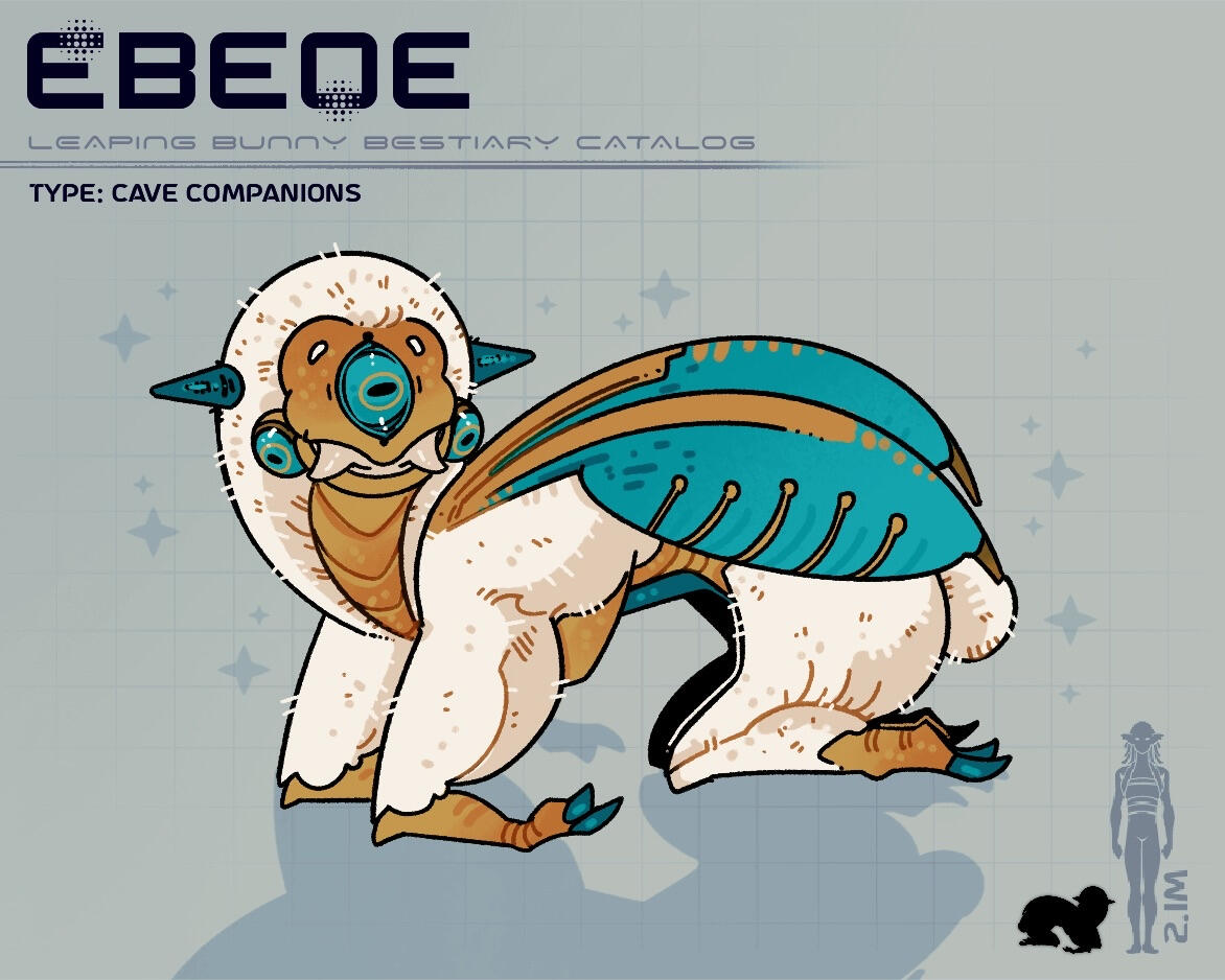 Ebeoes are the local herd animals commonly found in many of the villages that exist in the caves of Atlussen II. Ebeoes are not only kept for their soft wool, which villagers often shear to make garments, but also their ability to sense everything around them. Because they're hard of hearing, they rely on their sight to be able to survive, which makes them excellent sight companions. Often trained through clicks and knocking, you can see them frolicking around their trainers asking for a sweet treat in the shape of fruits or fungi.