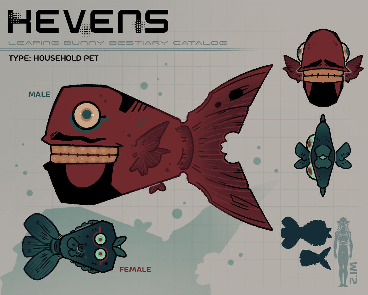 Kevens are a carnivorous fish species seen as Ono's pugs, with Beccas being the names of their female counterparts. Once beautiful fish, they have been bred to what they are today, showing the consequences of Alphean kind's hubris, a reminder of why messing with biology isn't a good choice. With world-wide competitions being common, Alpheans see who has the best groomed Keven, whoever's Becca is the largest, amongst other competitions of their vibrancies or teeth condition. Onoians are warned not to mess with a Keven's Becca, as they are known to bite. Keven's are known as the one's to bite, as their smaller brain allow for more space for their massive teeth.