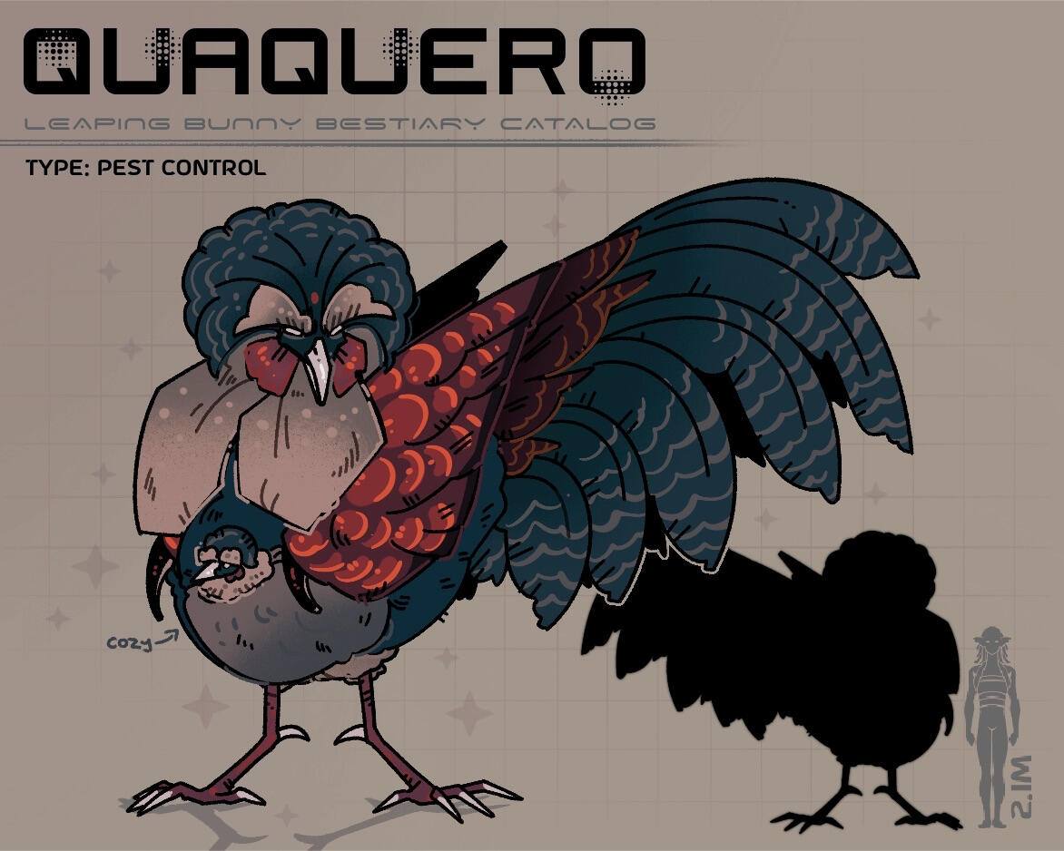 They're known to be a bit on the moodier side and will create nests that, when tampered with, can cause them to react with extreme violence. The disrupting Alpheans might lose a few hands. Their eggs, at least the size of an average Alphean hand, are used in most Xuxian cuisine and are a deep shade of red with an even redder yolk. They're rich in protein and extremely delicious. As long as the nesting Quaquero are offered something shiny, the hens will allow the house owners to take them.