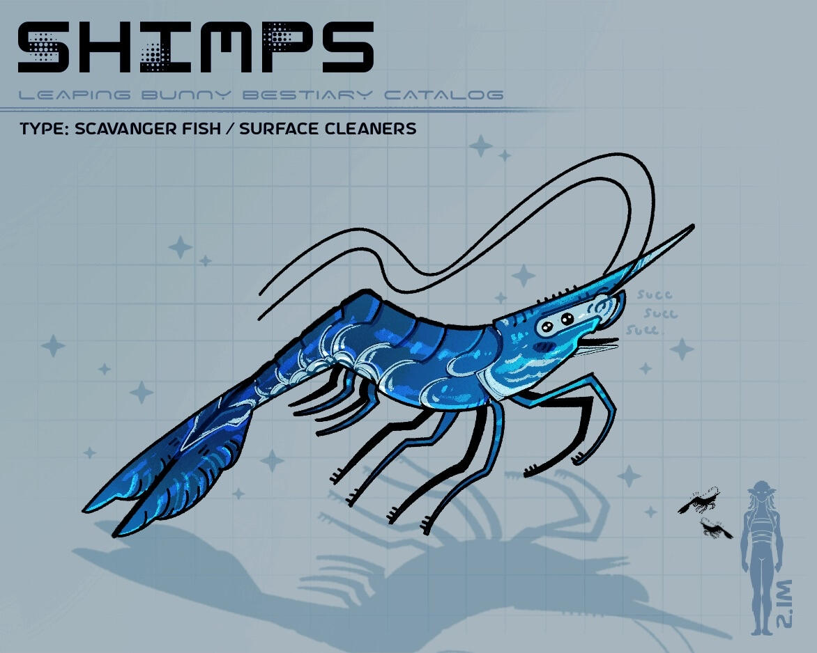Shimps are Ono’s embodiments of street rats, they plague the most crowded areas of the planet where trash cans are the most present. They are your good-for-all cleaners. Cleaning streets, walls, trash cans, restaurants, even Alpheans themselves. Moving in large swarms, they'll suck the dirty algae off everything they can find.